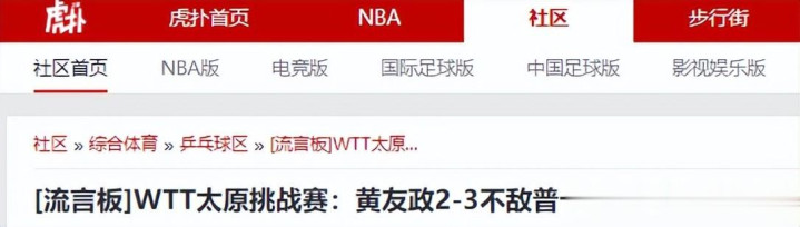 虎扑网——WTT太原挑战赛:黄友政2-3不敌普卡尔,无缘男单8强