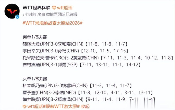 微博——WTT世界乒联官方