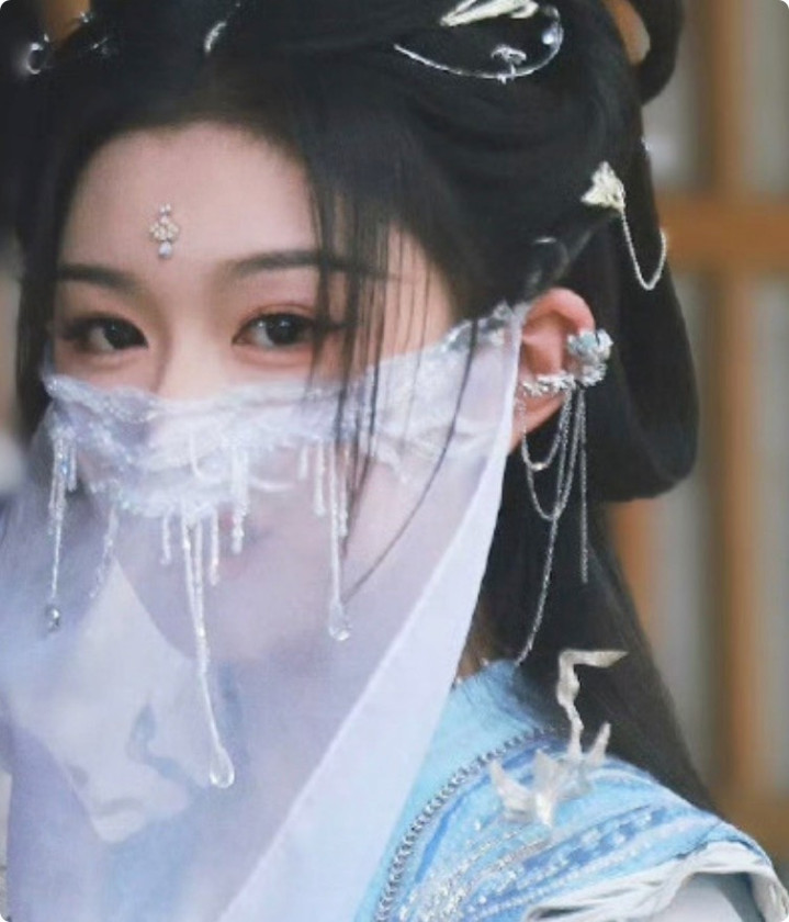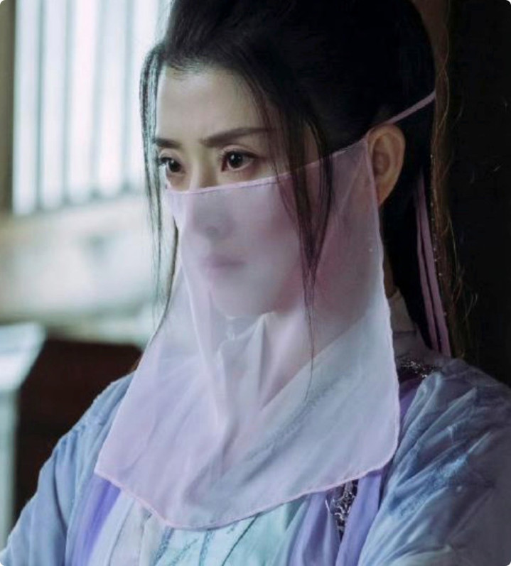 她常以白纱遮面,镜头一拉近就有氛围美感。