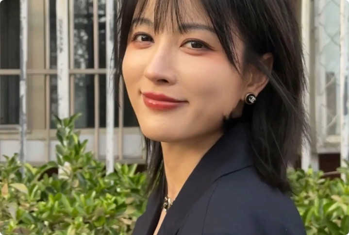 她脸部线条很耐看,不过分柔和,也不会太过犀利骨感。