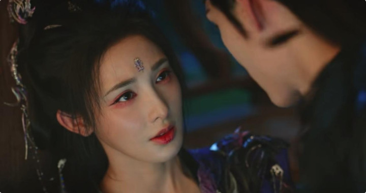 造型上,她成功将从《东宫》里的红衣形象,升级为今次的紫衣魅惑,她的脸型、眼型、气场都承载得住。