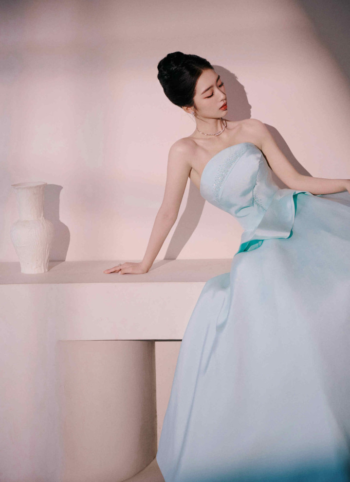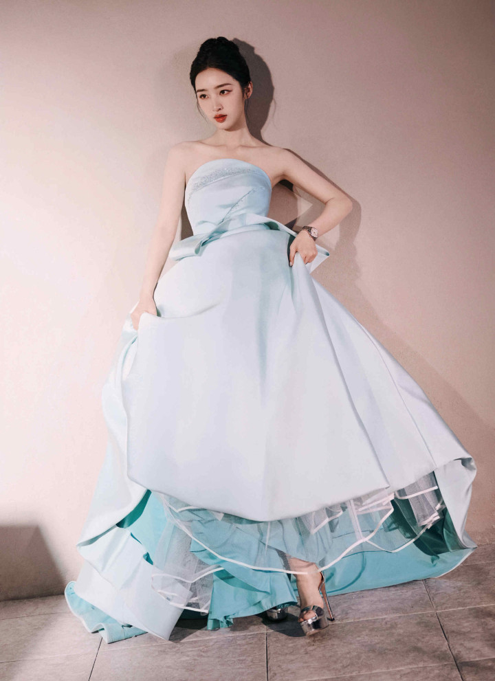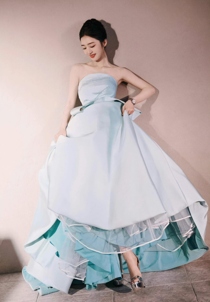 邓恩熙国剧盛典红毯造型直出,天青色等烟雨,而我在等你,05后新生小花邓恩熙身穿一袭天青色长裙亮相红毯,正青春,无需过多修饰便美得像小仙女一样。
