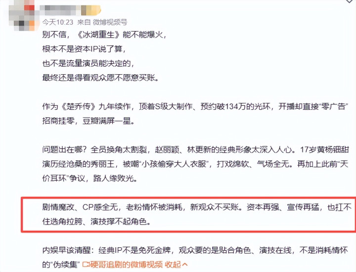 不仅把原本的赵丽颖在内一众实力演员,换成了黄杨钿甜,还把人设改的面目全非,又想要情怀,又想要创新。