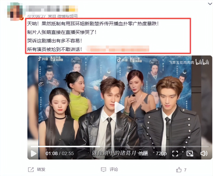 说着什么演员拍摄不易,拍摄花絮之类的,可太让人“感动了”,面前的几个演员话都不敢说,完全和其他剧直播差远了。