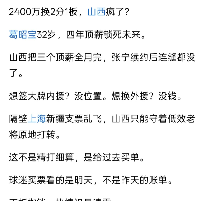 最近,山西汾酒男篮顶薪球员葛昭宝和原帅在夏季联赛上的几场表现,引发了球迷关于球员状态与球队给予的顶薪匹配度的种种热议。