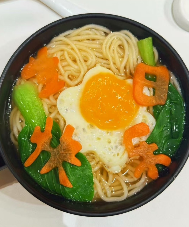 既然是过生日,那长寿面必然是必不可少的啦。下图就是李小萌晒出的长寿面照片,面上用胡萝卜雕刻的“生日快乐”好显眼,真是隔着屏幕都感受到了生日的喜悦之情。
