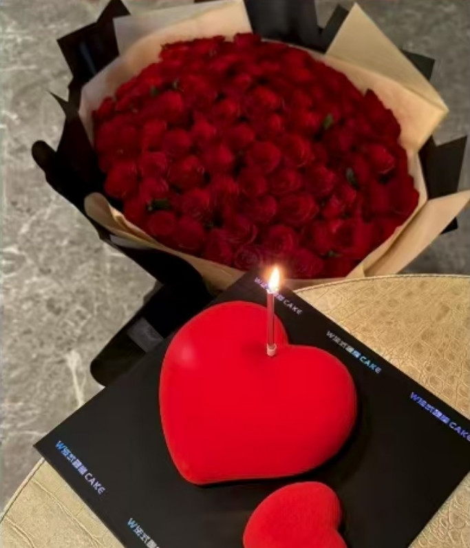 李小萌晒出红玫瑰和生日蛋糕的特写照片,看得出来对于老公的礼物,她相当喜欢,这个生日也必然过得十分幸福甜蜜。