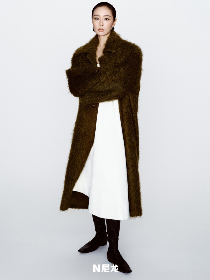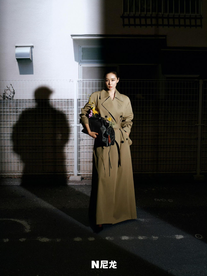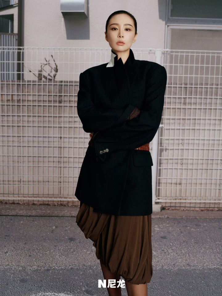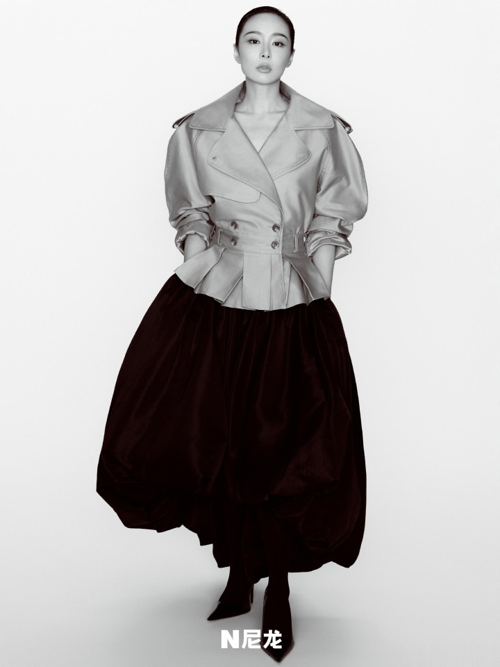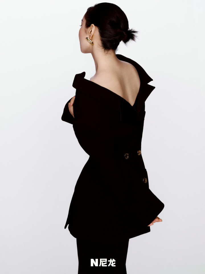 镜头下的她眼眸清亮又带点疏离感,身姿挺拔凝视镜头,肩线微微放松却带着凌厉的气场,神态间满是不刻意的松弛与自在。